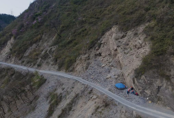 科研团队在湖南省湘西土家族苗族自治州花垣县石栏镇磨子村首次野外科考中采集化石(2021年4月7日摄)。新华社发