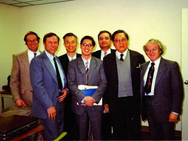 1983 年,徐建中(前排右三)在麻省理工学院陪同吴仲华(前排右二)访问。