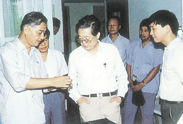 1990年,周光召(中)在原凯发k8武汉植物研究所考察。(受访者供图)